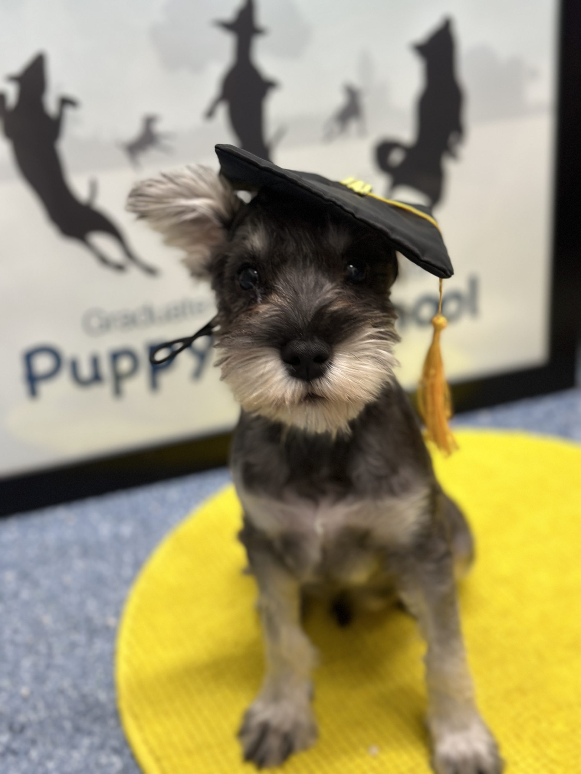 Cues taught: sit, stay, recall, loose lead walking, look, down, leave it, stand, and follow me.