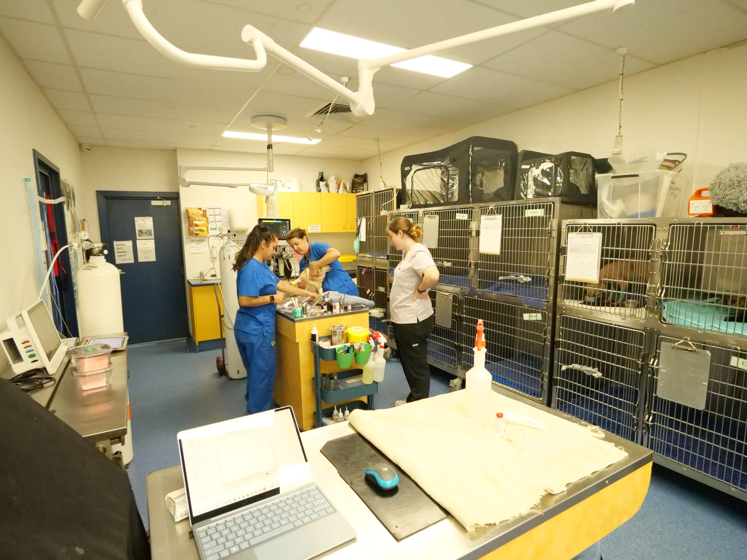 If a patient is in the “Critical” category, the vet team begins life-saving interventions right away: